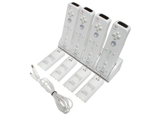 A set of six white Nintendo Wii controllers is displayed on a white background. Each controller has a black wrist strap and a black sensor bar attached to the bottom. The controllers are arranged in two stacks of three, with the top stack slightly overlapping the bottom stack. A white power cord is coiled on the left s... | New Charger Dock + 4 x Battery for Nintendo Wii Remote | 0b6696a9f24a3ff04eb36f9fdaee81cd9f2b4cd1a57e9aa8501772605f2d2059 | 000910722715 | 0 | 0 | 76 | 11 | 0 | 0 | |