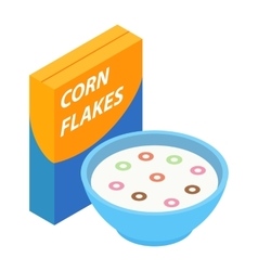 A stylized illustration of a cereal box with the word 'CORN' in bold letters on the front. The box is orange with a blue border and is placed to the left of a bowl filled with cereal. The bowl is blue and contains a variety of colorful cereal pieces, including rings and flakes, with a prominent ring in the center. The ... | Corn flakes isometric 3d icon vector | 52c8bb453bf1324ddabfd8647acb30dc046c801eb451083108477a020a9d648e | 000910722762 | 0 | 0 | 67 | 6 | 0 | 0 | |