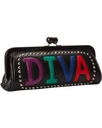 A black leather handbag with a shiny buckle closure and a colorful embroidered patch on the front that reads 'DIVA' in red, green, and purple letters. The bag has a chain strap and is set against a white background. | Brighton - Chic Clutch - Lyst | c6fa3b6e16c3414c573b67ef14e59dbf9c17af6135111cc6b4fec97911e7f899 | 000910722810 | 0 | 0 | 39 | 6 | 0 | 0 | |