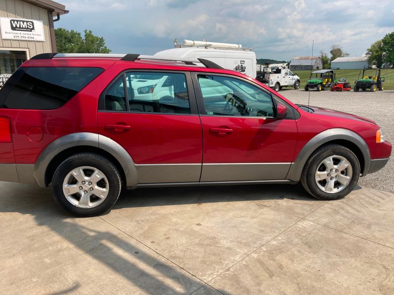 A red compact SUV is parked on a concrete surface. The SUV has a black roof rack with a spare tire mounted on it. The vehicle is positioned in front of a building with a sign that reads 'WMS'. In the background, there are two white trucks and a green tractor. The sky is partly cloudy. | 2007 Ford Freestyle SEL in , Ohio | 898d07857fe9873f3e44700ee5fb30d0762993b8ba98711b1085ccec62e969f7 | 000910722880 | 0 | 0 | 56 | 7 | 0 | 0 | |