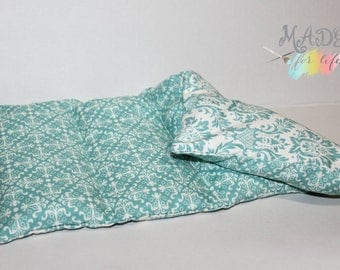 A folded blue and white patterned blanket is displayed against a white background. The blanket has a geometric pattern with a mix of blue and white colors. The top right corner of the image has a watermark that reads 'MADE WITH LOVE'. | Large Reusable Hot Cold Rice Bag - Heating Pad - Ice pack - Therapy - Relaxation - Natural Pain Reliever | 172268e542d8b014822c4274fb59675f7ac31e0b0d4e95f592623e3edcd50c16 | 000910723051 | 0 | 0 | 42 | 20 | 0 | 0 | |