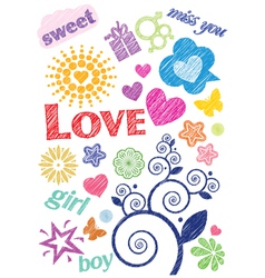 The second image is a collection of various illustrations and text elements that appear to be part of a greeting card or a similar design. The elements include a large 'LOVE' text in the center, surrounded by smaller text elements such as'sweet','mila', 'guy', 'girl', 'boy', and'mila'. There are also decorative illustr... | Love icons vector image | fb0b6f362a4c9a820d6afe85d6a8af328034e7fd6db17564c2400d909b0af21d | 000910723318 | 0 | 0 | 90 | 4 | 0 | 0 | |