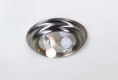 A modern, sleek ceiling light with a circular design and three white bulbs is mounted on a white wall. | open ceiling light for bulb replacement - stock photo | 26da9e7d916c4af1904b051a5bfee249ea11409077936185058ef24ae8f43cd3 | 000910723246 | 0 | 0 | 19 | 9 | 0 | 0 | |