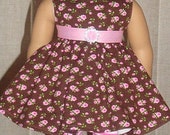 A young girl is wearing a floral dress with a brown and pink color scheme. The dress has a fitted bodice with a pink belt and a full skirt. The floral pattern consists of pink and green flowers on a brown background. | Pink & Brown Rose Print Twirl Dress For American Girl Or Similar 18-Inch Dolls | 18560badaa2c4cc42567d67d6f10f0cf74580c38a26ec5105d8586e5640532a0 | 000910723350 | 0 | 0 | 42 | 14 | 0 | 0 | |