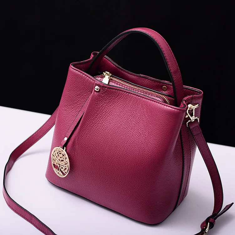 A pink leather handbag with a gold circular emblem on the front is placed on a white surface against a dark background. The handbag has a long strap, a zipper closure, and a small gold zipper pull. | New organizer cowhide women's handbag genuine leather bucket bag ladies casual shoulder messenger bags handbags famous brands women shoulder bag famous brand cowhide handbag bucket bag genuine leather shoulder crossbody handbag solid messenger bags | 699dc05b9cbc71ce94fa70deb8293452664aec12756ed9aaf20ea11ee348392f | 000910723722 | 0 | 0 | 37 | 34 | 0 | 0 | |