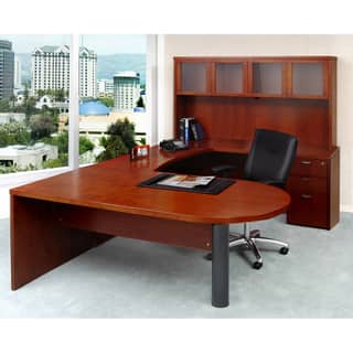 A modern office space with a large window offering a view of a cityscape. The room features a wooden desk with a black leather chair in front of it. On the desk, there is a black desk lamp, a black phone, a blue notebook, and a black pen. The desk also has a black laptop with a picture of a sandwich on the screen. To t... | Mayline Mira Series Typical #16 Executive Desk | 96d6448a25c050382e7d3cec1da90bee99586530cb4bd80064ab7a96fb4db131 | 000910723831 | 0 | 0 | 95 | 7 | 0 | 0 | |
