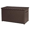 A brown wicker storage box with a woven design and a small latch on the right side. | Deck Boxes Keter Sumatra 135 Gallon Resin Rattan Look Outdoor Deck Box for Patio Furniture Cushions, Garden Tools, Toys, and Pool\xe2\x80\xa6 outdoor deck boxes | e8427e0992db4dd84ea6d2925f28eae9856cbe3a05d3bb058b2ba35302e13488 | 000910723768 | 0 | 0 | 17 | 24 | 0 | 0 | |