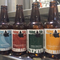 A row of six beer bottles with different labels is lined up on a surface. The labels feature various designs and colors, including a man in a canoe, a mountain, and abstract patterns. The bottles are filled with beer, and the labels are titled 'Rising Tide', 'American Copper', 'Zephyr', 'Daymaker', 'New England', and '... | First batch a big hit for novice brewer | 5a9e77a9c2f49d8b3d64eff045935915cc1f97ab6767b2f49a920de0bb243631 | 000910724017 | 0 | 0 | 54 | 8 | 0 | 0 | |