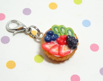 A small, colorful keychain with a fruit design is attached to a silver ring. The keychain features a variety of fruits including strawberries, blueberries, raspberries, and kiwi slices, all arranged on a pastry base. The fruits are depicted in bright, vivid colors, and the keychain is set against a background with a po... | Fruit Tart Charm, Miniature Food Charm, Polymer Clay Charm, Food Charm, Sweet Charm, Tiny Charm, Kawaii Charm, Charm Bracelet, Gift for her | 19070f46c2bba8f9d1a531c7d2f917e7397408899b7085e1b934c32d89dc1969 | 000910723889 | 0 | 0 | 55 | 22 | 0 | 0 | |