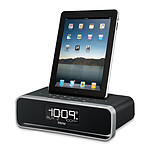 A modern tablet with a black screen displaying various app icons is propped up on a sleek, black and silver docking station with a digital clock display. The docking station has a flat surface and a small speaker on the right side. The tablet is positioned upright, and the docking station is placed on a surface with a ... | iHome iD91 | 3cb7e6ce916168175735b7143ce51f9ed9e671efedaa36862f3aae2a9a4561bd | 000910724075 | 0 | 0 | 60 | 2 | 0 | 0 | |