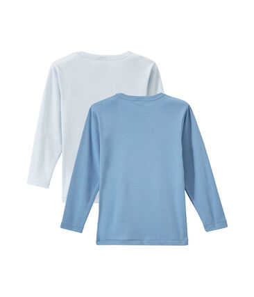 A white and blue t-shirt is displayed on a white background. The white t-shirt is on the left side, and the blue t-shirt is on the right side. Both t-shirts have a relaxed fit with short sleeves and a round neckline. | Set of 2 boys' plain long-sleeved t-shirts | 78ed4777170a3b8fa3da1bcc89af8cd07f53971a3ef13e1070a2a556d7d73841 | 000910723980 | 0 | 0 | 41 | 7 | 0 | 0 | |