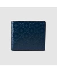 A dark blue leather wallet with a textured pattern and a silver logo on the front is displayed against a white background. | 8f9c13a5acb1 Gucci Signature Bee Wallet in Green for Men - Lyst | a27c8d3163344610e441ef51c57d0433247040f10001056e530fc6df40539b2a | 000910689133 | 0 | 0 | 22 | 11 | 0 | 0 | |