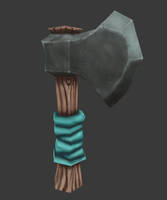 A 3D rendered image of a hammer with a wooden handle and a metal head. The handle is wrapped with a blue cloth, and the head of the hammer has a textured surface with a visible rivet. The hammer is set against a dark grey background. | Hand Painted Low Poly Axe by Madgharr | 69d717b0df237e16c6127f26e12c51b6d5ee44ae6c102f8119e47493b86c1696 | 000910689050 | 0 | 0 | 46 | 7 | 0 | 0 | |
