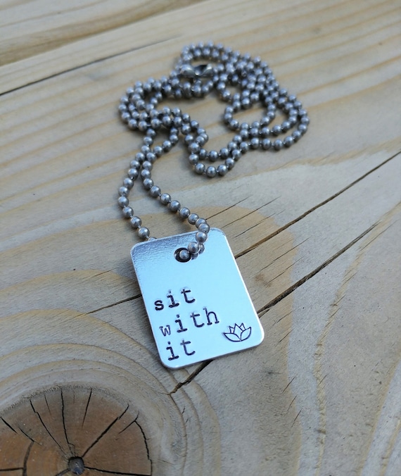 A silver necklace with a charm that reads 'Sit with it' is lying on a wooden surface. | sit with it necklace // with lotus flower // meditation necklace | 14145e1a82d4987eae1a4e897bf9ccca69c95f7288d570c14b8f9e2a6f57bd09 | 000910688878 | 0 | 0 | 17 | 11 | 0 | 0 | |