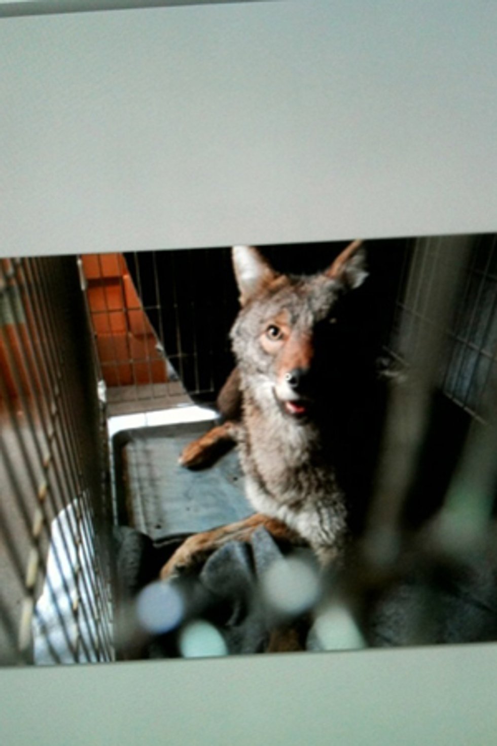A close-up image of a fox sitting inside a cage. The fox has a brown and white coat, with a bushy tail and pointed ears. It is looking directly at the camera with a curious expression. The cage has a metal mesh door, and there is a blanket on the floor of the cage. The background is a plain, light-colored surface. | An Up-close Look at the TriBeCa Coyote | f9272336deb2facd071e7ce25164fdf0db9616d2429e5c19b935442a317a5553 | 000910689289 | 0 | 0 | 61 | 7 | 0 | 0 | |