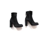 A pair of black high-heeled boots with a pointed toe and a thick, chunky heel. The boots have a zipper on the side and are placed against a white background. | Vintage Ankle Boots 6.5 / Black Leather Boots / Italian Platform Boots / Sock Boots | ce7c36dbf0a92b39fe0a1e4c948d6a1f7ff41e261b4fd104cadfdcbda0c054d0 | 000910688877 | 0 | 0 | 30 | 15 | 0 | 0 | |