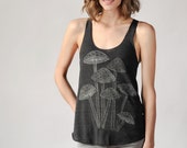 A woman is wearing a black tank top with a detailed mushroom pattern. | Mushroom Print, Graphic Tank, Racerback Tank, Boho, Yoga Clothes, Women's Tank Top, Women's Graphic TShirt, Camping Shirt | 57c70efbc4ae1621c1fd046819f92e9f2c5291d0258c279dea827e21b9b02649 | 000910689306 | 0 | 0 | 13 | 17 | 0 | 0 | |