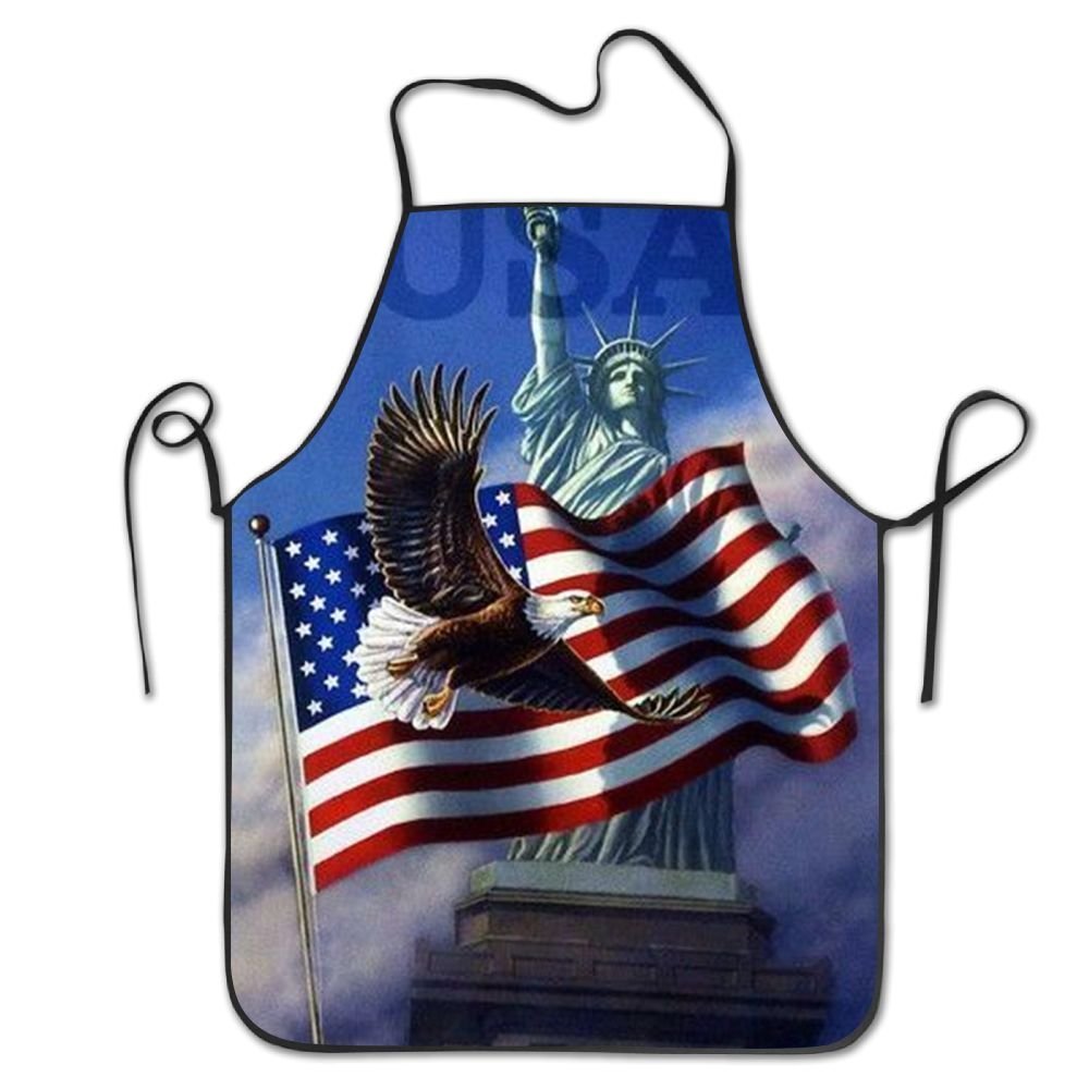 A kitchen apron with a patriotic design featuring the Statue of Liberty, an American flag, and an eagle. The apron has adjustable neck straps and waist ties. The Statue of Liberty is depicted in the center, with the American flag on the left and the eagle on the right. The background shows a clear sky with a few clouds. | startoronto American Flag Eagle Aprons For Women/men Lightweight Grilling Waitress Overhand Funny Chef Apron | 04d2034dc01e828d1aa209a3bdd673e4c76277b24e72ee64b702f689d9d03452 | 000910689753 | 0 | 0 | 59 | 14 | 0 | 0 | |