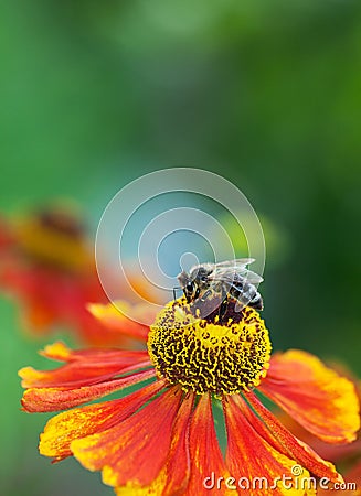 A close-up image of a bee on a flower. The bee is centered on the flower, which has a prominent yellow center surrounded by vibrant orange petals. The background is blurred, with hints of green foliage. | Free Honey Bee (Apis Mellifera) On Helenium Flower Stock Images - 27165114 | bb34c29b88ef2ce408aaac8d2995d56e6f3ee7e0b2f6c862bb7df64e2d0119e3 | 000910689751 | 0 | 0 | 36 | 12 | 0 | 0 | |