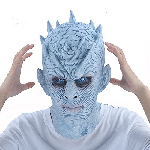 A person is wearing a detailed ice sculpture mask with a textured surface resembling ice, featuring sharp, pointed features and a menacing expression. The mask covers the entire head, including the hair, and the person is wearing a white t-shirt. The background is a plain, light color. | Guy Movie Costume Ideas (Men halloween mask, 2017 creepy halloween face mask for adult- Game of Thrones mask |Halloween Movie Party White Walkers Mask& Night King mask latex mask costume cosplay, mens halloween costume) | bca98578401ddccbefbe4b7f8bd2b2db0ed39cc4631506c54d63a4602b807547 | 000910690627 | 0 | 0 | 47 | 34 | 0 | 0 | |