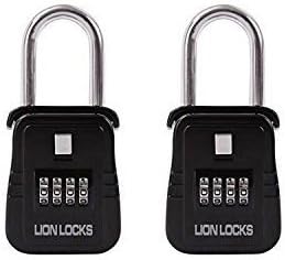 Two identical black padlocks with silver metal shanks are shown side by side. Each lock has a combination dial with numbers 0 to 9, and the word 'LIONLOCKS' is written in white letters on the bottom of each lock. | Black Lion Locks 1500 Key Storage Lock Box with Set Your Own Combination | 7d846efba7eec005718341b3b3b7ddf8b36b698e66935cb18fadd1e8b742bdda | 000910690764 | 0 | 0 | 39 | 13 | 0 | 0 | |