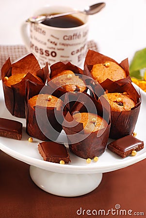 A plate with a stack of chocolate muffins, some with nuts on top, and chocolate chips scattered around. The plate is on a brown surface, and there is a cup of coffee with the words 'Caff\xc3\xa8' and 'Latte' on it in the background. | Free Chocolate Chip Muffins Royalty Free Stock Photos - 16635638 | 12fca6360983af3d45fbdcc93fc5c02e83b831dbcb3f78344c46aa57e69dff46 | 000910690681 | 0 | 0 | 43 | 10 | 0 | 0 | |