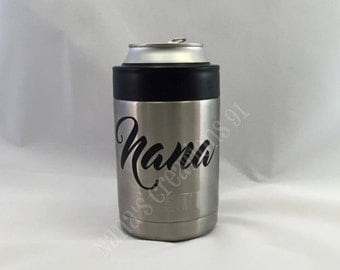 A silver thermos with a black lid and a white label that reads 'NANA' in cursive script. The label also includes the text 'JULY 2019' and 'JULY 2019' in smaller print. The thermos is placed on a white background. | Name Decal-Vinyl Name Decal-Yeti Decal-Monogram Decal-Vinyl Decal-Nana Decal-Yeti Decal-Custom Name Decal-Personalized Tumbler Decal | 98ae3f5abbc72c3cd7c3f7644428ea9428fb9d1b54366b62b37dfa84a8e08bad | 000910685495 | 0 | 0 | 39 | 13 | 0 | 0 | |