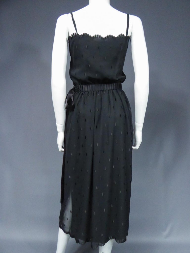 A black polka dot dress with a fitted bodice, short sleeves, and a flared skirt is displayed on a mannequin. The dress has a black belt cinched at the waist and a black bow at the back. The mannequin is positioned against a grey background. | \xe2\x80\x8b\xe2\x80\x8b\xe2\x80\x8b\xe2\x80\x8b\xe2\x80\x8b\xe2\x80\x8b\xe2\x80\x8bA French Christian Dior Embroidered Chiffon Dress and Blouse Circa 1980 For Sale 8 | 168eb54df59c5d8f9712443deb2edd22e0f8bfa6fc1391e7f02a65c39607ea2a | 000910691396 | 0 | 0 | 45 | 14 | 0 | 0 | |