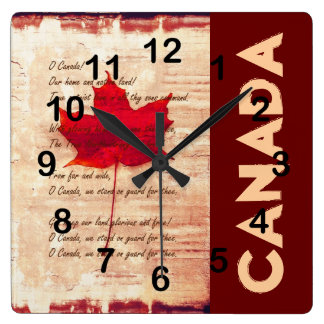 A vintage-style wall clock with a red and white color scheme, featuring a maple leaf design at the bottom. The clock face has Roman numerals and is set against a background with a red and white pattern resembling a Canadian flag. The clock hands are black, and there is a red maple leaf design on the clock face. The clock is mounted on a wall with a textured surface. | red canadian maple leaf with athem canada square wall clock | c1a8eaba7b68c9637a614749fa5bf1fd19cd655a5da4cc7ebf04ddf026367ff5 | 000910691458 | 0 | 0 | 69 | 10 | 0 | 0 | |