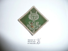 A green patch with a wolf emblem in the center is attached to a white fabric. Below the wolf, the text 'CLUB SCOUTS 1985' is embroidered in white. To the right of the patch, there is a small white logo with the text 'SCOUT'S STUFF 4 SALE' and the number '4' below it. | Cubmaster Patch (C-CM3), 1967-1969, glued | 03a7527b23544e64a3f72f74b0c7d2b620af473ab60b6335363b02ede7df0c99 | 000910691671 | 0 | 0 | 53 | 5 | 0 | 0 | |