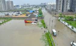 Aerial view of a flooded city street with a white van driving through the water, surrounded by buildings and a blue sky in the background. | A view of a flooded locality after heavy rains, in Surat on | 91929e5bab9b1cffe0b4ce2ff354d4ed1eda449bb635659d3011ec5ac7a71813 | 000910691657 | 0 | 0 | 25 | 12 | 0 | 0 | |