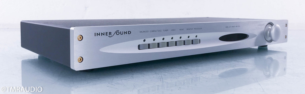 A sleek, modern audio amplifier with a metallic finish and a black front panel is displayed on a reflective surface. The amplifier has a series of buttons and a control knob on the front, and the brand name 'IMMER SOUND' is prominently displayed on the top. The device is positioned against a white background, which highlights its metallic sheen and the reflective surface it sits on. | InnerSound Stereo Line Stage Preamplifier; Sanders (No Remote) | fd3b0796477ca4d3ce76015670eea46767e2a3c37dd69333ebb2615c8ad57617 | 000910691949 | 0 | 0 | 66 | 8 | 0 | 0 | |