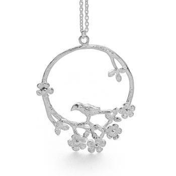 A silver necklace with a bird and floral design is displayed against a white background. | Sitting Bird Necklace | d26121997d8a50c81872d7db53fbb2ec52cb8dedfc8ae0e0488334ec93647d0c | 000910692418 | 0 | 0 | 15 | 3 | 0 | 0 | |