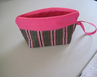A pink and green striped fabric pouch with a pink ribbon handle is placed on a white surface. | Pink and Black Bag with Wrist Strap | 3dc20cb499dbf785b95dabe46bd87ceb0abf4157b846ffdf12bb4441461f0717 | 000910692555 | 0 | 0 | 18 | 7 | 0 | 0 | |