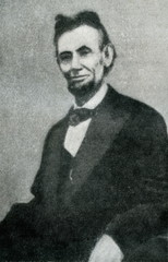 A sepia-toned portrait of Abraham Lincoln with a beard and mustache, wearing a dark suit with a white shirt and a bow tie. The image has a vintage appearance with a textured background. | Abraham Lincoln (last photo, 19. april, 1865) | ca7a2459d6ea63c03dd103e87a0ffd85d9b2a84a83c44c3e9b70fc0a1af80f68 | 000910692648 | 0 | 0 | 33 | 7 | 0 | 0 | |