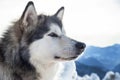 A close-up of a Siberian Husky's face with its ears perked up and a focused expression. The dog is set against a backdrop of a snowy mountain landscape with a clear sky. | Alaskan Malamute Royalty Free Stock Photo | b5b4c678b2a43615de72243beb3fced0db2445ade8305791f18dae2b16085f35 | 000910692669 | 0 | 0 | 32 | 6 | 0 | 0 | |