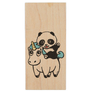 A wooden puzzle piece with a panda bear and a unicorn design, featuring a panda bear sitting on the back of a unicorn with a blue mane and tail, and a pink nose. The panda bear has black fur with white markings, and the unicorn has a white body with a blue mane and tail. The puzzle piece is placed on a wooden surface with a light brown background. | Magically cute wood USB flash drive | c5a505da9ccf2974f781fb59679e672a24a2a1b89fb3a4b8ffec908be47f319d | 000910692801 | 0 | 0 | 69 | 6 | 0 | 0 | |