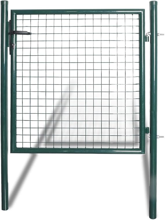 A green metal fence with a grid pattern is shown against a white background. The fence has a black latch on the left side and a metal rod on the right side. The grid pattern consists of square openings with a mesh design. | Metal Garden Fence Gate Single Door Patio Side Gate Security Heavy-duty Steel | 375f13d604ca5b1fe58f4ff3cc657ede9647ad0bf6244a05376c7869767d52f9 | 000910693094 | 0 | 0 | 43 | 12 | 0 | 0 | |