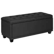 A black, tufted, rectangular ottoman with a smooth surface and no visible legs. | Valenciana Linen Ottoman Blanket Box | effc35ee9717f8940713381ae8c283ab8a36383248e215a8b47636cb33f74349 | 000910693108 | 0 | 0 | 13 | 5 | 0 | 0 | |