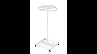 A white metal stand with a circular metal structure on top is displayed against a white background. The stand has a flat base with wheels and a vertical pole that supports the circular structure. The circular structure has a series of horizontal bars and is empty. | Professional Heavy Duty Clothing Retail Display Stand | cbe656813ef7bec11b3f8e1d3be32ad49a9a70859062d75e0e2ad051fb621cfb | 000910693709 | 0 | 0 | 46 | 7 | 0 | 0 | |