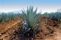 A tall, green plant with long, pointed leaves stands prominently in the foreground, surrounded by a field of similar plants. The ground is covered in a mix of dirt and small rocks, and the background features a clear blue sky with a few clouds. | Lanscape tequila Guadalajara Obraz Royalty Free | d963dc0f37c7233ff37622197fcc5fa538ef23be1af2676755d90f02f775562f | 000910693691 | 0 | 0 | 44 | 6 | 0 | 0 | |