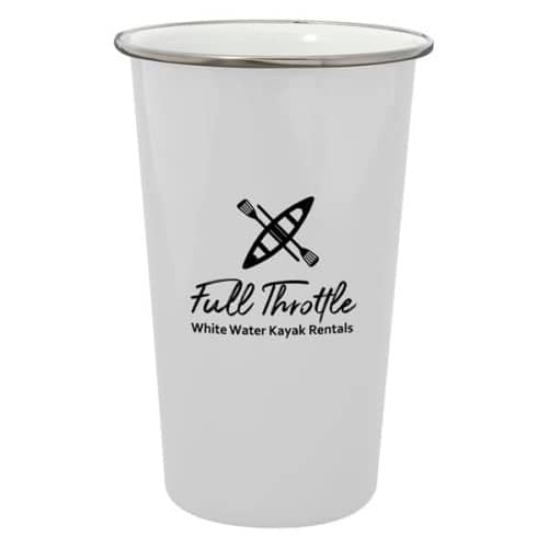 A white plastic cup with a black logo that reads 'FULL THROTTLE' and features a paddle icon. The cup is placed against a white background. | 17 Oz. Tacoma Enamel Cup | 827e3c8fae9797f5b62d71f395761a9bb10f8e8263532e5f5c9abba53d145f33 | 000910693637 | 0 | 0 | 25 | 5 | 0 | 0 | |