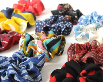 A collection of colorful hair bows is displayed on a white background. The bows come in various patterns and colors, including stripes, polka dots, and floral designs. The colors range from bright yellows and blues to more muted tones like reds and greens. The bows are arranged in a way that showcases their different patterns and colors, creating a visually appealing display. | Printed fabric scrunchie, CHOOSE YOURS, vintage textile, Hair accessories, MALAM | 9e87c36f4b7946c76bf281b555f0a8b776fb8979dac6a5d0fbc11586d0bd9b5d | 000910693914 | 0 | 0 | 62 | 10 | 0 | 0 | |