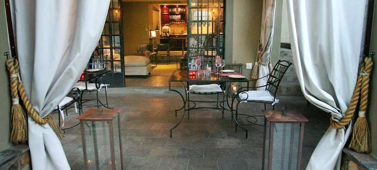 The first image shows an interior view of a restaurant with a modern design. The room is well-lit with natural light coming from the left side, highlighting the elegant decor. There are two tables with chairs, one in the foreground and another further back. The table in the foreground has a white tablecloth, while the one in the background has a black tablecloth. On the tables, there are various items including wine glasses, a bottle, and a vase. The floor is tiled, and the walls are adorned with shelves containing books and decorative items. The overall ambiance is sophisticated and inviting. | Affordable Luxury in Namibia (11 days) | b0fc1ad16539c9029ac153b4fb1326ad916d5a2ba3849952967288d84604c43d | 000910694235 | 0 | 0 | 101 | 6 | 0 | 0 | |