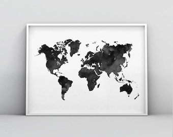 A black and white ink drawing of a world map is displayed on a white wall. The map is framed and hangs at a slight angle, with the top left corner pointing upwards. The continents are outlined with varying shades of black ink, and the oceans are filled with white ink. The map includes detailed geographical features such as rivers, lakes, and mountain ranges. The overall effect is a stark contrast between the black ink and the white background, creating a striking visual representation of the world. | Blue world map printable indigo map print navy map poster world map wall art world map poster watercolor world map print black gumiabroncs Gallery | fd16e1b2068f1b31259bbf1c60e00bc83c6737f7792e00226ba6f2b8563a8275 | 000910694257 | 0 | 0 | 87 | 24 | 0 | 0 | |