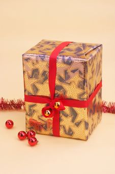 A closed gift box with a red ribbon tied around it, placed on a surface with a few red and white ornaments scattered around it. The box has a patterned design with stars and a red bow on the front. | Free Gold Parcel - Goldenes Geschenkpaket Royalty Free Stock Photos - 394508 | 861fee0082442b909045b3997989d2505f9c092db271f3abeefd87ff1114fd8f | 000910695146 | 0 | 0 | 40 | 12 | 0 | 0 | |