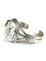 A silver bracelet with a white and black marbled stone is displayed against a white background. | White Buffalo Silver Feather Bracelet by John Nelson | 34cad3b8295a1bcf06567bc0ee7c7a89be5a872afc45f8d45f7864dff5d1001a | 000910697249 | 0 | 0 | 16 | 8 | 0 | 0 | |