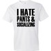 A white t-shirt with the phrase 'I Hate Pants & Socializing' printed in black text on the front. The shirt has a round neckline and short sleeves. | I Hate Pants & Socializing Shirt, Hate Pants Shirt, Girlfriend Shirt, Boyfriend Tee, Funny Shirt, Slogan Shirt, Text T-shirt | 2505fa7a799252b5b6ad6a72ef4d23021f890a94e9743db58ef0b49e6739a91b | 000910697104 | 0 | 0 | 27 | 19 | 0 | 0 | |