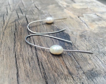 A pair of silver earrings with white pearls are resting on a wooden surface. | Freshwater pearl threader earrings. Bridal jewlry. Modern artsy. Delicate, Simple. | 3174e4ec187738a4ed66d1a545cba855bed1329f9c4b86bc661d3250c7f0174c | 000910697204 | 0 | 0 | 14 | 10 | 0 | 0 | |