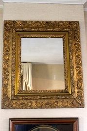 An ornate, gilded frame with intricate designs surrounds a plain, empty space on a wall. | Gold Gilt mirror-$75.00 small crack bottom left corner 32" x 29" | 2cce16996aa43e4669620548974bb2a5288caf77305419a4833567448d4e7ebb | 000910697278 | 0 | 0 | 15 | 11 | 0 | 0 | |